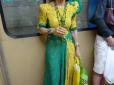 жінку в яскравій жовто-зеленій сукні і з виразним макіяжем, зазначають Патріоти України. "В метро зустріла незвичайну пані Ніну. Жінка-свято з