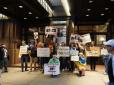 Російський диригент Валерій Гергієв в числі інших навесні 2014 року публічно висловився на підтримку політики Путіна щодо Криму та України. Мітингувальники тримали у руках плакати «Гергієв - путінський лакей», «Гергієв підтримує путінські війни», «Груз...